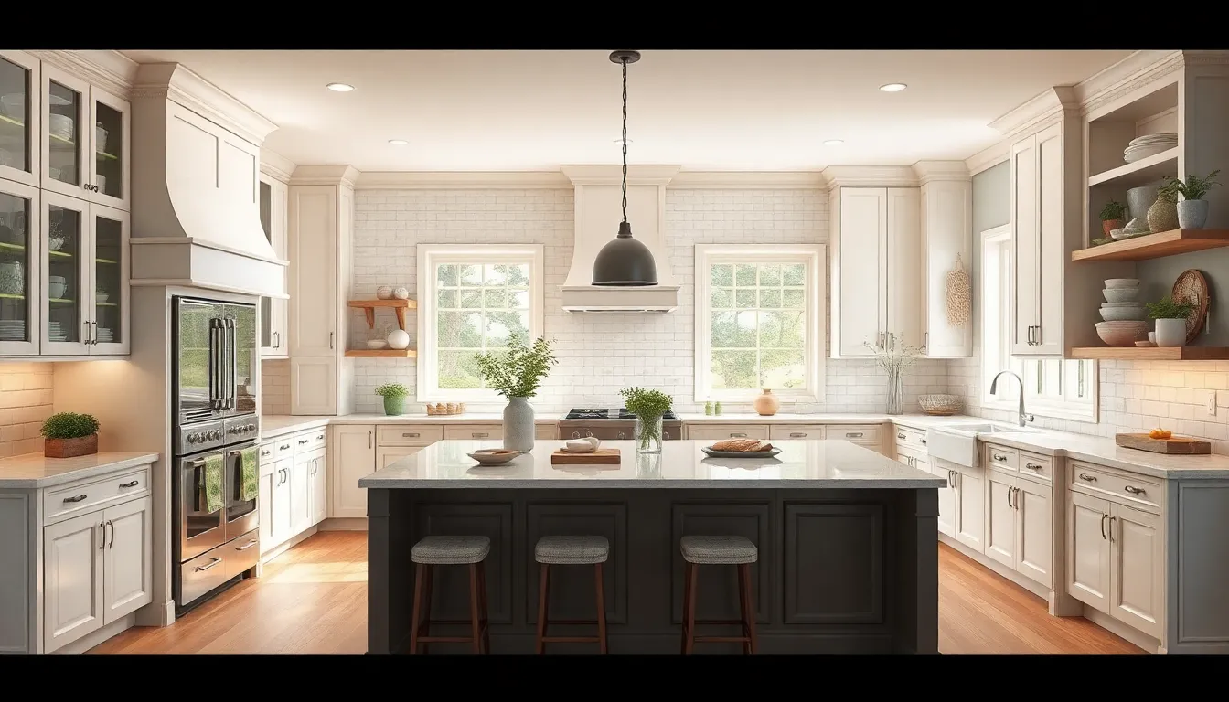 Timeless design defines transitional kitchens, as they harmoniously mix classic and modern elements. The use of simple yet elegant cabinetry stands out while not sacrificing functionality. Neutral colors serve as the foundation, promoting a calming atmosphere that’s easy to refresh with vibrant accents. Design choices remain relevant through trends, ensuring classic appeal that lasts. Durable materials, such as quartz and granite for countertops, enhance longevity while maintaining aesthetic beauty. This combination creates an inviting and stylish space that adapts over time.